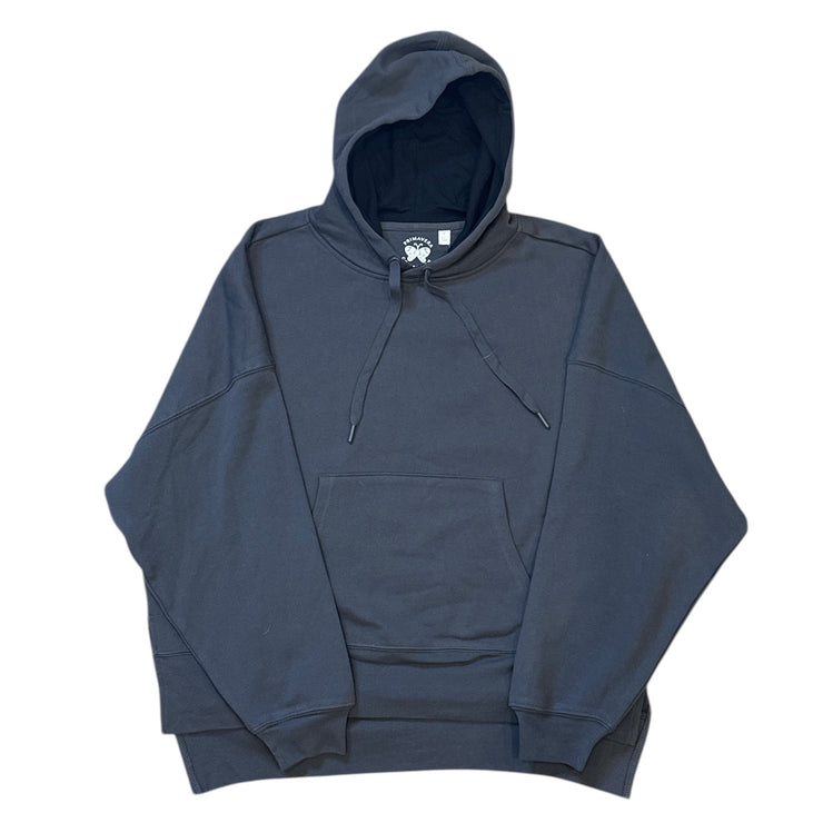 This sweatshirt is plain on the front and comes sized Small through Extra Large, the color is carbon grey and the hood is lined in black jersey. The fit is a true to size and we love it paired with your favorite cut offs, jeans, or work out wear.